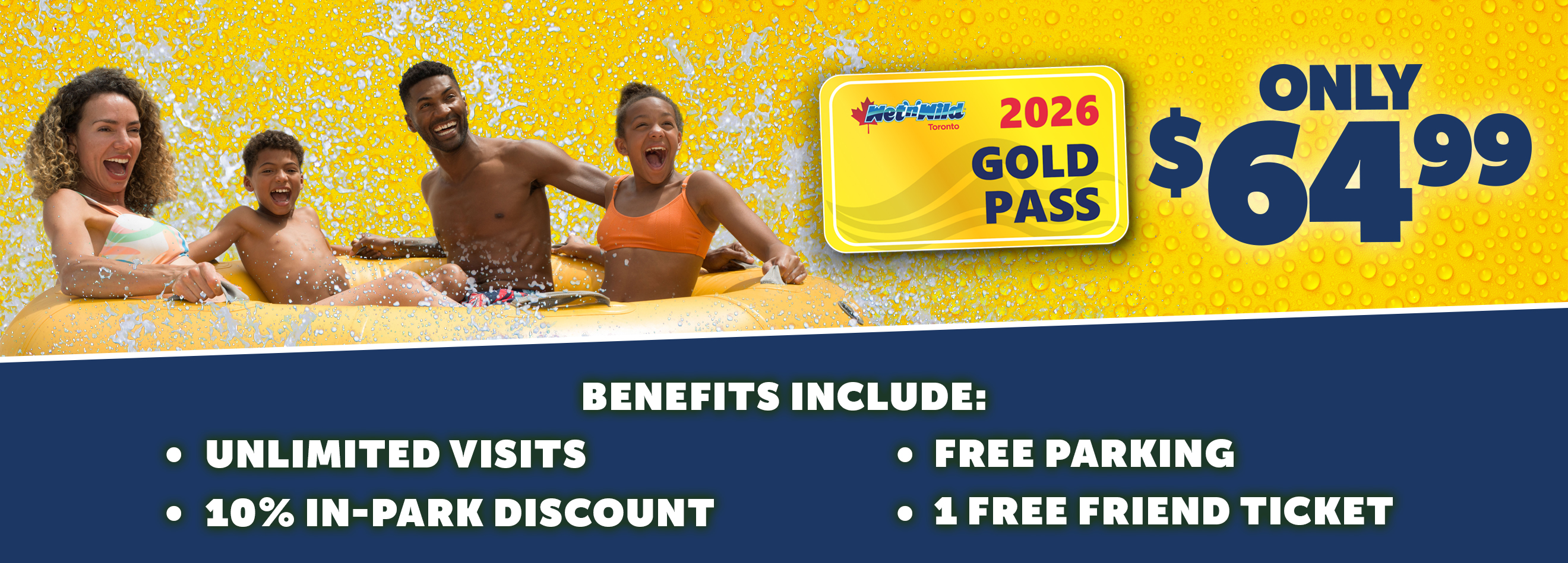 Best value! Get Gold Pass Perks plus an extra free friend ticket for 2026, $2 fountain drinks, and 25% cabana discount. Price includes processing fee.